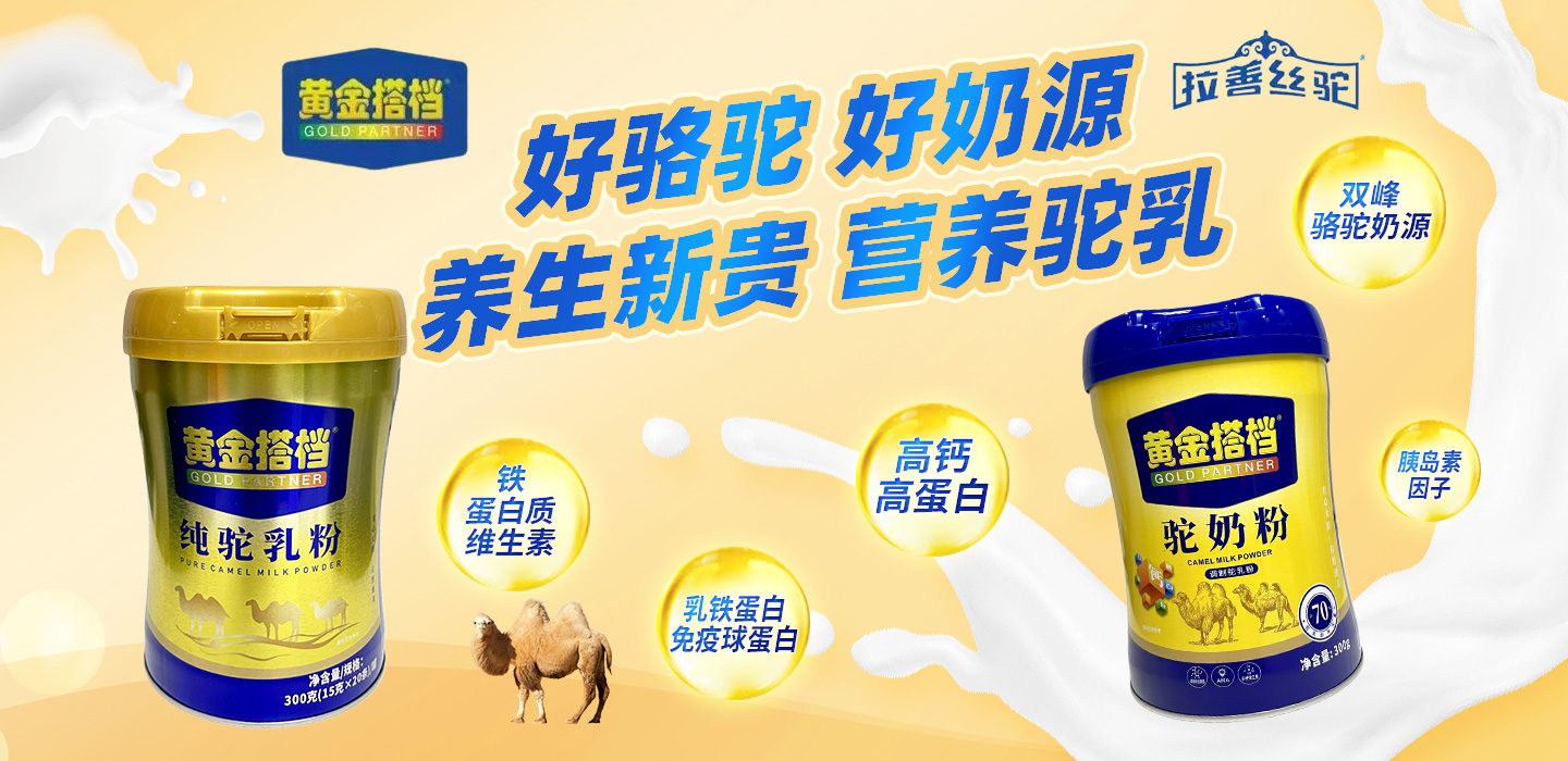 品牌名稱:黃金搭檔 主營產(chǎn)品:黃金搭檔駝奶粉 品牌特色:純凈奶源 優(yōu)質(zhì)營養(yǎng)