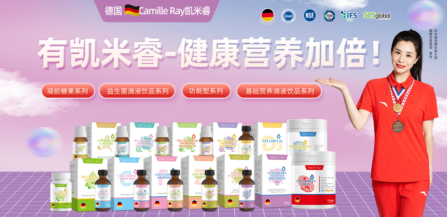 Camille Ray凱米睿是德國Axiomove旗下三大品牌之一。德國Axiomove是一家集研發(fā)、生產(chǎn)和銷售為一體的膳食營養(yǎng)補(bǔ)充劑企業(yè),通過德國FDA和GMP雙重認(rèn)證,被評為優(yōu)質(zhì)的生產(chǎn)企業(yè)。德國Axiomove 制藥成立于 2004 年,位于德國巴伐利亞州, 將制造傳統(tǒng)草藥和膳食補(bǔ)充劑的傳統(tǒng)和專業(yè)知識(shí)與面向未來的設(shè)備和現(xiàn)代制藥管理相結(jié)合。我們以特殊的性價(jià)比為客戶提供“德國制造”的高 GMP 質(zhì)量的產(chǎn)品。