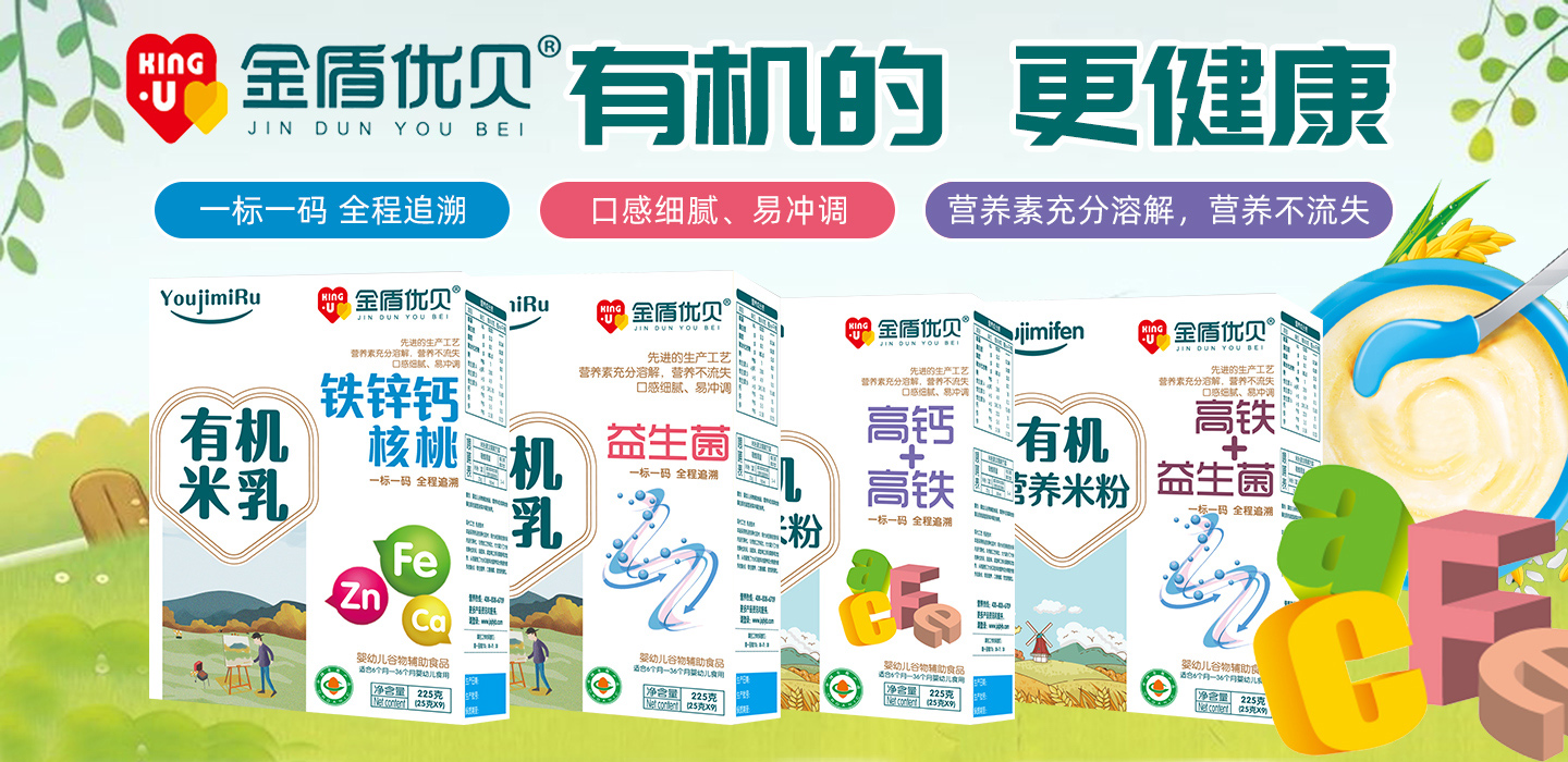 品牌名稱:金盾優(yōu)貝 主營產(chǎn)品:金盾優(yōu)貝嬰童輔食 品牌特色:安全 營養(yǎng) 健康