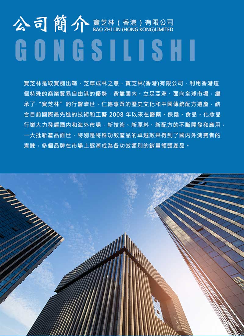 寶芝林是取寶劍出鞘.芝草成林之意。寶芝林(香港)有限公司,利用香港特殊貿(mào)易自由港的優(yōu)勢,背靠國內(nèi)、立足亞洲、面向全球市場,繼成了“寶芝林”的行醫(yī)濟世、仁德惠眾的歷史文化和中國的傳統(tǒng)配方遺產(chǎn),結合目前國際最先進的技術和工藝,2008年以來在醫(yī)藥、保健、食品、化妝品行業(yè)大力發(fā)展國內(nèi)和海外市場,新技術、新原料、新配方的開發(fā)和應用,一大批新產(chǎn)品面世,特別是特殊功效產(chǎn)品卓越效果,得到了國內(nèi)外消費者的青睞,多個品牌在市場上逐漸成為各功效類別的銷量領頭產(chǎn)品。