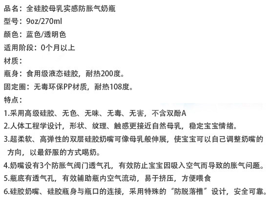 硅膠很柔軟,不用奶瓶刷用手也可以刷到奶瓶的各個角落,容易清洗。寶寶吸奶時,奶瓶會隨著奶水的減少而自動收縮,始終保持著瓶身內(nèi)外氣壓一致,避免寶寶吸入過多的空氣而導(dǎo)致嗆奶、腹脹等不適,有效解決喂奶時脹氣的煩惱,從而達(dá)到自動呼吸的功能。