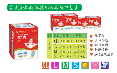 您所在位置:首頁>福建天樂衛(wèi)生用品有限公司>實爽全棉特薄yinge紙尿褲