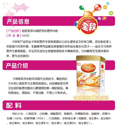 卡咪呢金胚麥芽D3高鈣有機(jī)營養(yǎng)米粉