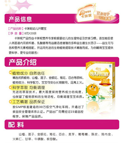 卡咪呢有機米粉系列是專為中國寶寶設計的營養(yǎng)輔食,選用有機大米,科學搭配維生素AD等維生素,還特別添加;撬、DHA、AA等有助智力發(fā)育的營養(yǎng)成分,富含15種營養(yǎng)素。現(xiàn)上?ㄟ淠啬笅胗闷酚邢薰久嫦蛉珖瞻资袌鰠^(qū)域誠招卡咪呢有機米粉代理商。