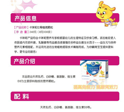 您所在位置:首頁(yè)>上海卡咪呢母嬰用品有限公司>卡咪呢壯骨增高顆粒