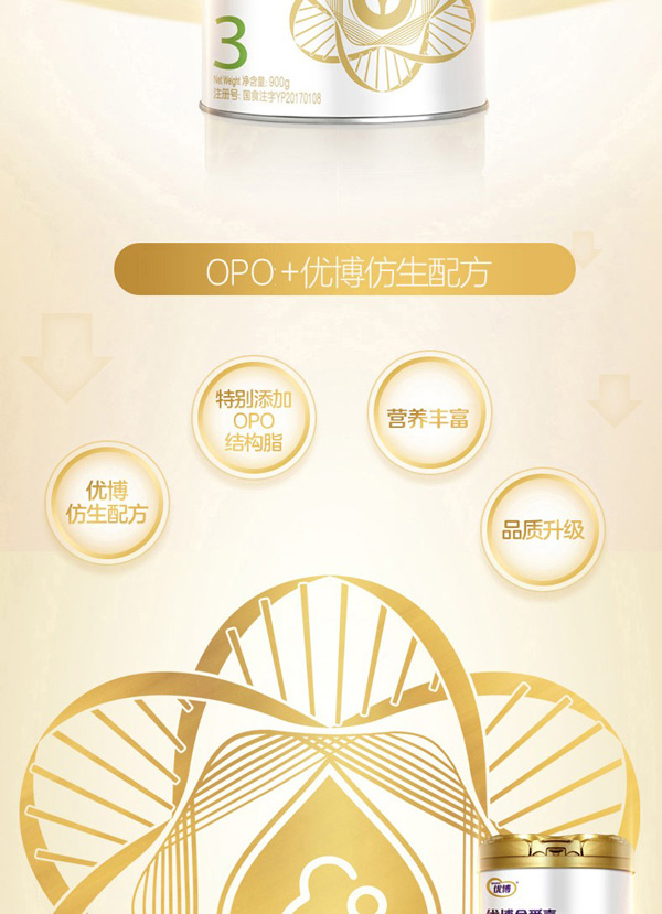 優(yōu)博金愛嘉youe配方奶粉(12-36月齡,3段)900g聽