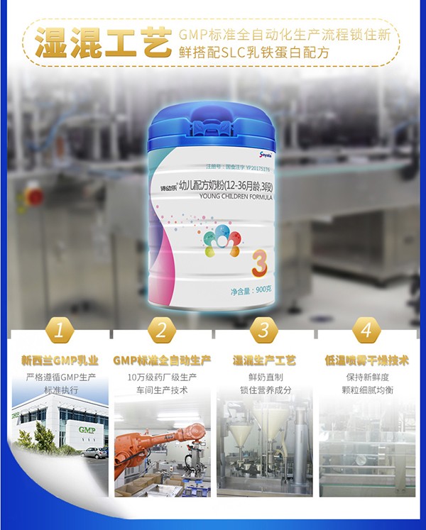 新西蘭詩幼樂是由新西蘭GMP乳業(yè)榮譽(yù)出品,GMP乳業(yè)的母公司GMP制藥集團(tuán),是新西蘭大型跨國(guó)制藥集團(tuán)。GMP工廠已獲得中國(guó)乳品生產(chǎn)GMP認(rèn)證以及有機(jī)食品等多項(xiàng)認(rèn)證,并曾兩次得到央視新聞報(bào)道的肯定。