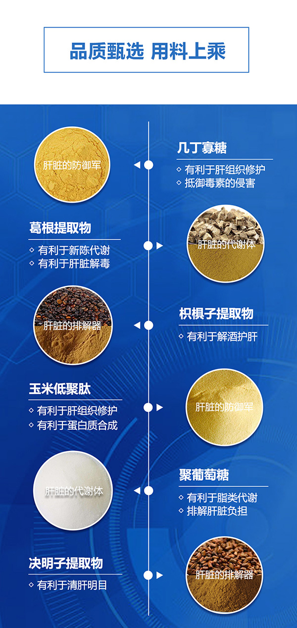 生命益元素天帝仁旰樂(lè)吧優(yōu)選幾丁寡糖、葛根提取物、枳椇子提取物、玉米低聚肽、決明子提取物、聚葡萄糖為主要原料組成重要配方,運(yùn)用優(yōu)良的生產(chǎn)技術(shù)及工藝,經(jīng)過(guò)嚴(yán)格的品質(zhì)控制精致而成,保護(hù)肝臟,無(wú)懼熬夜酒戰(zhàn)。