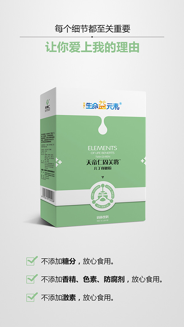 生命益元素天帝仁固關(guān)將富含豐富的幾丁寡糖,且小分子易吸收,同時(shí),還有多重營養(yǎng),全面補(bǔ)充,不添加糖分;不添加香精、色素、防腐劑;不添加激素,可放心食用。