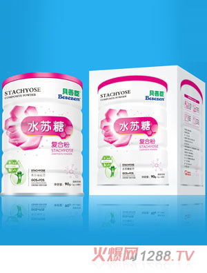 水蘇糖:水蘇糖是天然存在的一種四糖,是一種可以顯著促進雙歧桿菌等有益菌增殖的功能性低聚糖。純品為白色粉末,味稍甜,甜度為蔗糖的22%,味道純正,無任何不良口感或異味。其分子結(jié)構(gòu):“半乳糖-半乳糖-葡萄糖-果糖”。水蘇糖對人體胃腸道內(nèi)的雙歧桿菌、乳酸桿菌等有益菌群有著極明顯的增殖作用,能迅速改善人體消化道內(nèi)環(huán)境,調(diào)節(jié)微生態(tài)菌群平衡。它能促進形成有益菌在消化道內(nèi)的優(yōu)勢菌地位,抑制產(chǎn)氣產(chǎn)酸梭狀芽孢桿菌等腐敗菌的生產(chǎn),另外產(chǎn)生大量生理活性物質(zhì),調(diào)節(jié)腸道pH值、滅殺致病菌,阻遏腐敗產(chǎn)物生成,抑制內(nèi)源致癌物的產(chǎn)生和吸收,并且分解衍生出多重免疫功能因子。