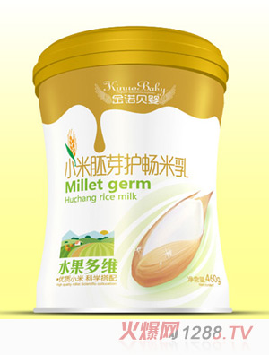 金諾貝嬰小米胚芽護(hù)暢米乳DHA益生元護(hù)暢強(qiáng)化鈣鐵鋅水果多維益生菌罐裝460g