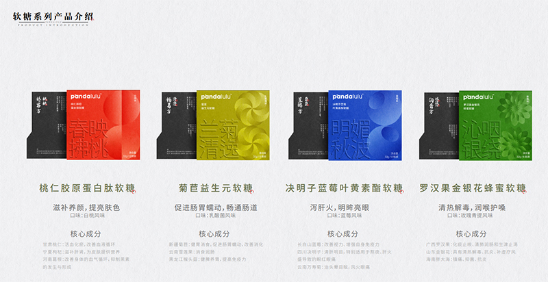 pandalulu產(chǎn)品理念:解構(gòu)中醫(yī)組方,精準(zhǔn)匹配當(dāng)下國(guó)人保養(yǎng)需求,匯集全國(guó)優(yōu)秀原廠地食材,采用前沿生物科技,打造集美感、新鮮感、文化感健康食品,引領(lǐng)東方健康時(shí)尚。