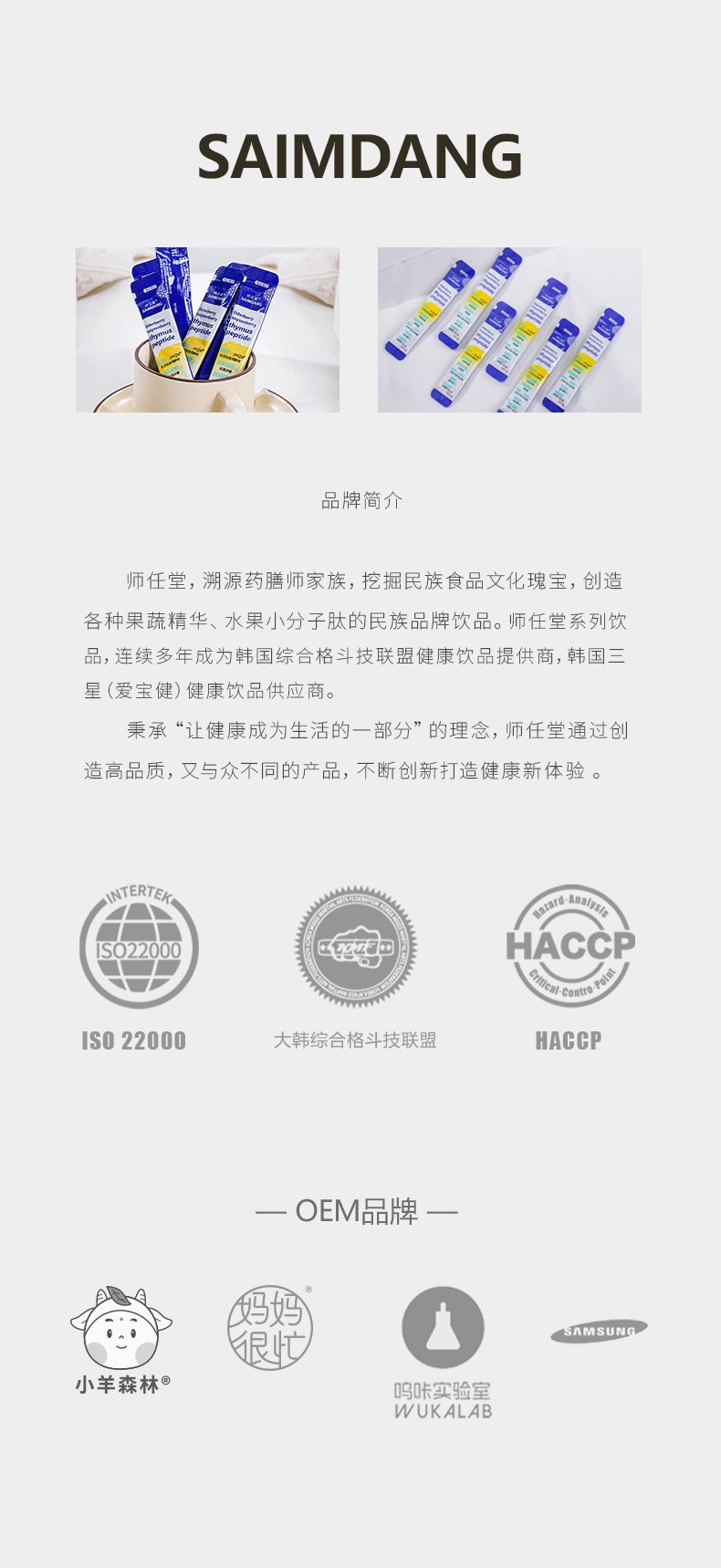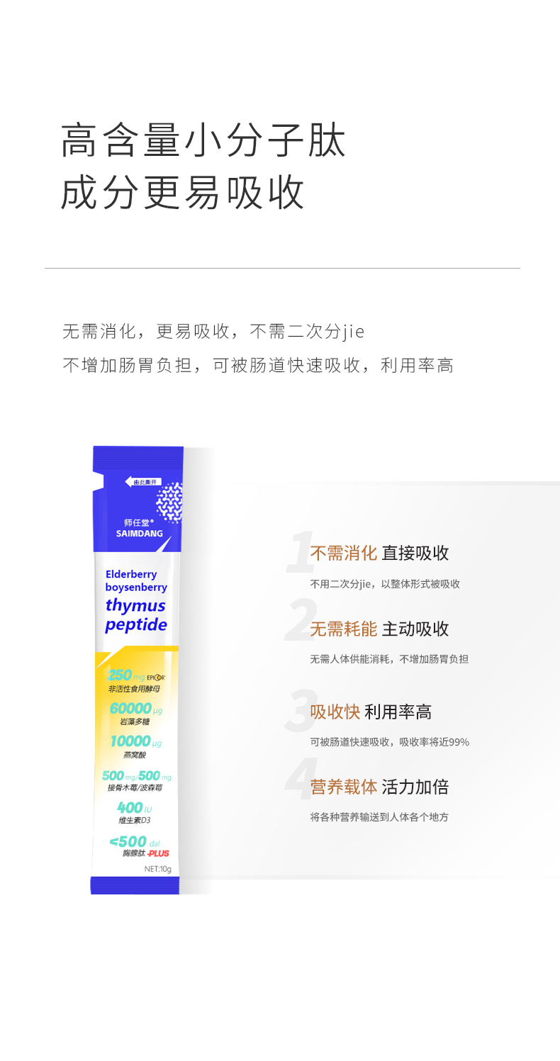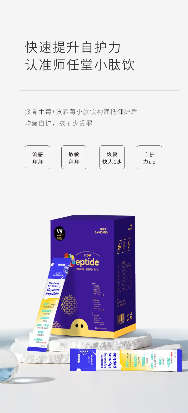師任堂接骨木莓+波森莓小肽飲,每20g添加非活性食用酵母500mg、巖藻多糖120000μg、燕窩酸20000μg、接骨木莓1000mg、波森莓1000mg、維生素D3 800iu,以及胸腺肽,七大核心成分,小分子,易吸收,均衡免疫,升級(jí)防護(hù)力。獨(dú)立包裝好攜帶,撕開溫水一沖就能喝,清甜莓果味,寶寶喝的開心,媽媽也放心!