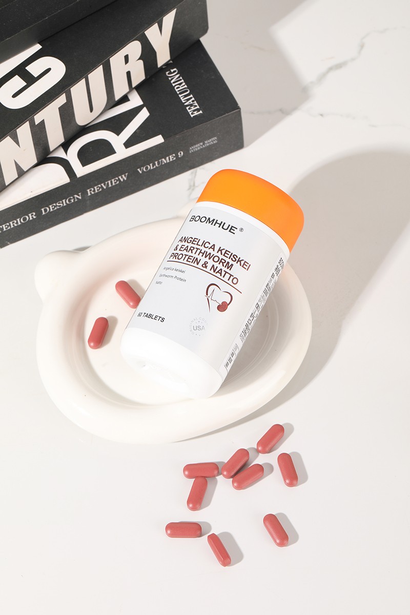 配料:山梨糖醇、明日葉20.25%、紅曲米、納豆12.5%、玉米淀粉、甜菜堿(天然提取)、地龍蛋白1.25%、微晶纖維素。