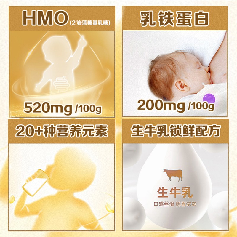 澳貝高HMO乳鐵蛋自兒童奶粉PLUS,甄選北緯43~53°世界公認(rèn)的黃金奶源帶生牛乳,科學(xué)配比高含量乳鐵蛋白和母乳低聚糖HMO(2’-FL),協(xié)同初乳堿性蛋白、水解蛋黃粉、乳礦物質(zhì)、DHA、ARA、燕窩酸、牛磺酸、葉黃素以及10大維生素和8大礦物質(zhì),為成長(zhǎng)期的兒童提供更全面的營(yíng)養(yǎng)解決方案。