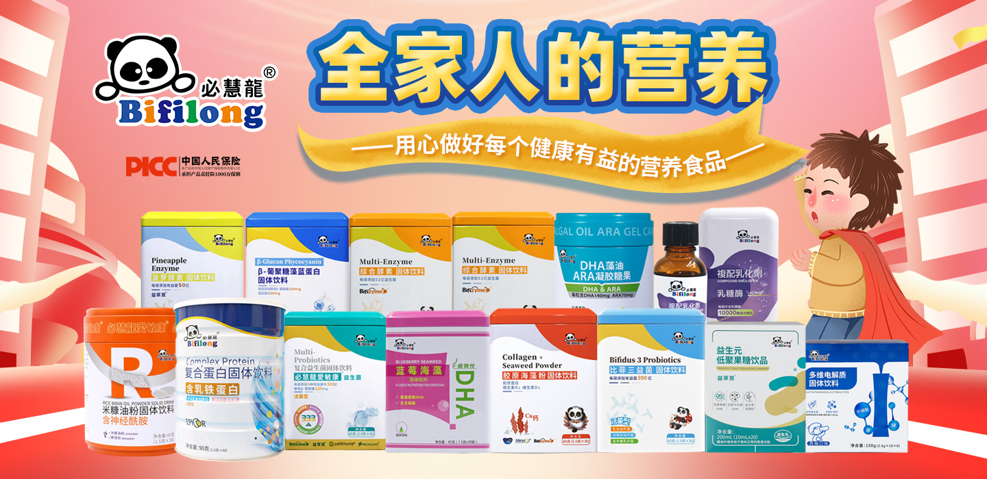必慧龍主營研究開發(fā)酵素、益生菌以及具備強效功能性營養(yǎng)食品,從中國臺灣起源,立足大陸,放眼全球,結(jié)合產(chǎn)、官、學(xué)、研能量持續(xù)研究開發(fā),秉承著專業(yè)以及嚴謹?shù)膽B(tài)度進行產(chǎn)品開發(fā)。其產(chǎn)品經(jīng)營包含嬰童營養(yǎng)食品、孕期及產(chǎn)后營養(yǎng)食品、功能性營養(yǎng)食品、特殊營養(yǎng)食品、運動營養(yǎng)食品等,是國內(nèi)為數(shù)不多的功能性營養(yǎng)品品牌,始終把品質(zhì)、健康、營養(yǎng)、安全放在第一位、堅持營養(yǎng)至上,安全第一的健康理念,提供優(yōu)質(zhì)的產(chǎn)品服務(wù),真正的把健康有益的營養(yǎng)食品植入每個人的生活,成立至今一直堅持致力健康營養(yǎng)事業(yè),堅持每一個產(chǎn)品的研發(fā)初衷都由營養(yǎng)、健康、安全第一的理念出發(fā),用心做好每個健康有益的營養(yǎng)食品。