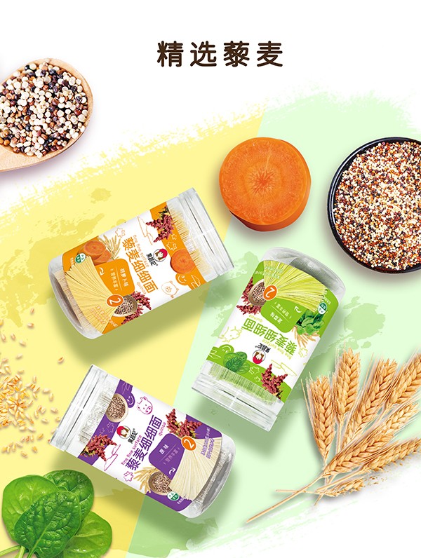 果蔬妃藜麥細(xì)細(xì)面,有菠菜味、胡蘿卜味、原味等多種口味,精選藜麥搭配蔬菜原汁,營養(yǎng)十足!獨立包裝,方便食用,是低齡小朋友的優(yōu)質(zhì)輔食選擇!