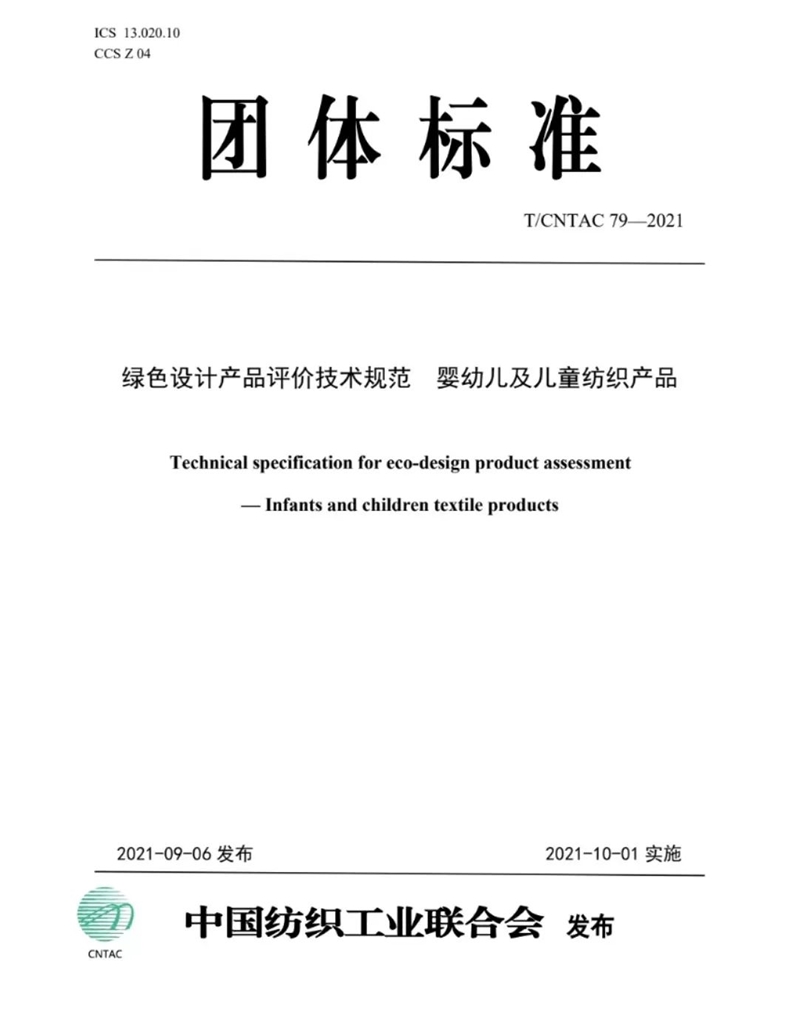 由中國(guó)紡織工業(yè)聯(lián)合會(huì)牽頭聯(lián)合多家嬰童服裝企業(yè)專家經(jīng)過(guò)3年多時(shí)間編制的“綠色設(shè)計(jì)產(chǎn)品評(píng)價(jià)技術(shù)規(guī)范—嬰幼兒及兒童紡織產(chǎn)品”團(tuán)體標(biāo)準(zhǔn)《T/CNTAC79-2021》已于2021年9月6日發(fā)布,并于2021年10月1日起實(shí)施,標(biāo)志著綠色童裝產(chǎn)品認(rèn)證啟動(dòng)!