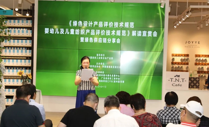 會(huì)上邀請(qǐng)了工業(yè)和信息化部電子第五研究所姜濤主任作了《綠色設(shè)計(jì)產(chǎn)品及其評(píng)價(jià)技術(shù)規(guī)范編制意義》主題發(fā)言,闡述了制定嬰幼兒童裝綠標(biāo)的背景、意義,綠色設(shè)計(jì)對(duì)產(chǎn)品全生命周期的影響,通過(guò)對(duì)產(chǎn)品標(biāo)準(zhǔn)評(píng)價(jià)可以將市場(chǎng)產(chǎn)品優(yōu)劣識(shí)別出來(lái),企業(yè)通過(guò)評(píng)價(jià)發(fā)現(xiàn)不足改進(jìn)提高,接下來(lái)要開(kāi)展綠色童裝產(chǎn)品評(píng)定認(rèn)證的工作。