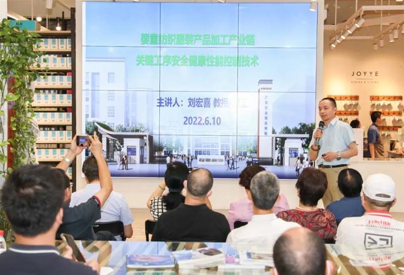 會(huì)議還邀請(qǐng)了廣東職業(yè)技術(shù)學(xué)院劉宏喜教授作了《嬰童紡織服裝產(chǎn)品加工產(chǎn)業(yè)鏈工序安全健康性能控制技術(shù)》主題演講,闡述了服裝生態(tài)紡織品概念、綠色原材料和綠色染整工藝,要加強(qiáng)原材料選購(gòu)和檢測(cè),增強(qiáng)企業(yè)的自控能力,生產(chǎn)出綠色生態(tài)的生態(tài)紡織服裝產(chǎn)品。