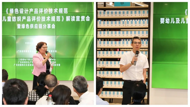 接著,由廣東省孕嬰童服裝發(fā)展分會(huì)康樂(lè)執(zhí)行主任作標(biāo)準(zhǔn)詳細(xì)解讀宣貫,首先介紹了國(guó)內(nèi)外LCA評(píng)價(jià)的情況,指出綠色設(shè)計(jì)產(chǎn)品標(biāo)準(zhǔn)適用性,從標(biāo)準(zhǔn)的評(píng)價(jià)指標(biāo)要求、生命周期評(píng)價(jià)與大家一一講解,指出綠色標(biāo)準(zhǔn)評(píng)價(jià)指標(biāo)與其他童裝標(biāo)準(zhǔn)指標(biāo)的不同,如何采集產(chǎn)品生命周期數(shù)據(jù)及形成的報(bào)告。