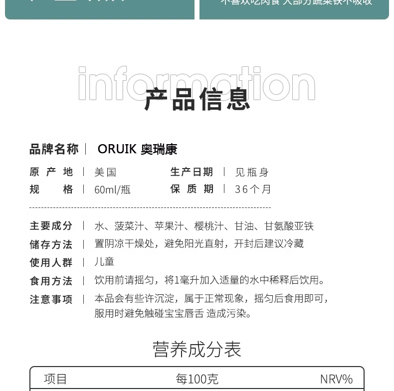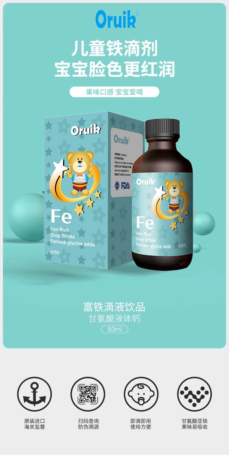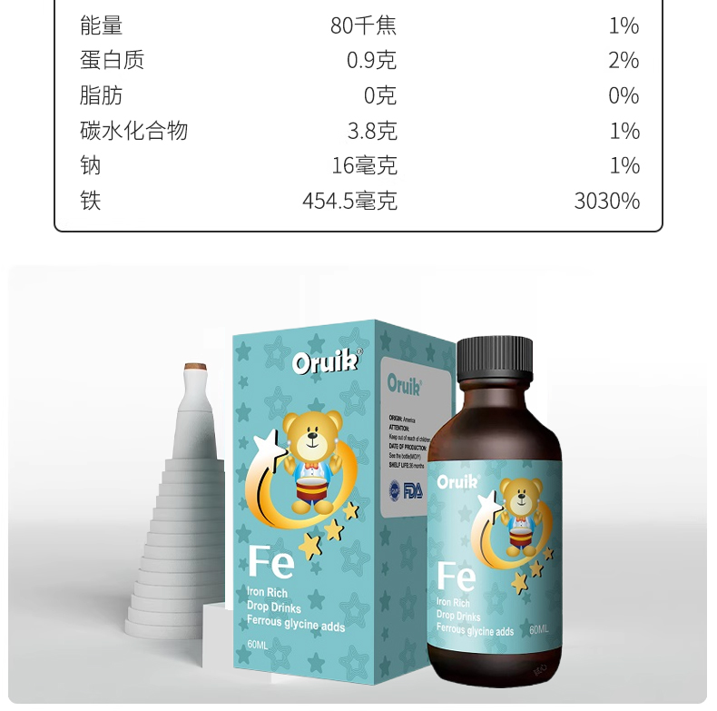 Oruik(奧瑞康)源自美國,是原裝進(jìn)口的專業(yè)兒童營養(yǎng)補(bǔ)充品牌。其推出的鐵滴液、鋅滴液等系列產(chǎn)品,在品質(zhì)上有著多重保障。鐵滴液采用甘氨酸亞鐵成分,鋅滴液含甘氨酸鋅,均以液體劑型呈現(xiàn),且有著果味口感等優(yōu)勢,在兒童營養(yǎng)補(bǔ)充食品領(lǐng)域極具競爭力。
