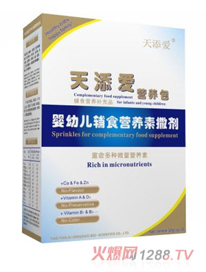 天添愛輔食營(yíng)養(yǎng)素是根據(jù)嬰幼兒的身體特征而研發(fā)的保健產(chǎn)品,產(chǎn)品中含有很豐富的維生素,能改善嬰幼兒身體素質(zhì),給寶寶有一雙明亮的眼睛,讓您的寶寶更加可愛。