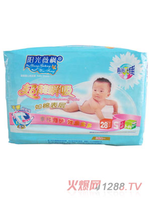 陽光微楓嬰幼紙尿褲是讓bao--bao安睡的紙尿褲,U型的設計,更貼合bao--bao的身形,不怕側(cè)漏,bao--bao尿液再多也能保持干爽,讓bao--bao使用起來更舒適。陽光微楓嬰幼紙尿褲是安徽悅美衛(wèi)生用品有限公司旗下產(chǎn)品,該公司系安徽興達集團有限公司的全資子公司,是一家致力于婦幼衛(wèi)生事業(yè)的專業(yè)化企業(yè),公司位于省級民營經(jīng)濟開發(fā)區(qū),公司占地面積50000平方米,投資8000萬元新建了6000平方米的現(xiàn)代化標準廠房。