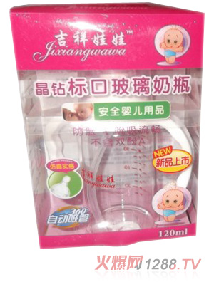 吉祥娃娃是香港吉祥娃娃嬰童用品有限公司的品牌,主營的產(chǎn)品主要有吉祥娃娃晶鉆玻璃標(biāo)口奶瓶、晶鉆玻璃寬口奶瓶、寬口玻璃防燙奶瓶、pp材質(zhì)奶瓶、嬰幼兒奶嘴等多個輔喂產(chǎn)品系列,設(shè)計美觀,使用方便,且物美價廉。