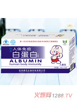 康尼兒童免疫白蛋白口服液主要作用成分是免疫白蛋白,這是一種從血漿中提取出來的蛋白質(zhì),可增加血容量和維持血漿膠體滲透壓,調(diào)節(jié)組織與血管之間水分的動(dòng)態(tài)平衡,從而起到增加循環(huán)血容量和維持血漿膠體滲透壓的作用。白蛋白既能結(jié)合陰離子又能結(jié)合陽離子,可以輸送不同的物質(zhì),可將有毒物質(zhì)輸送到解毒器官。白蛋白還是人體免疫球蛋白的重要組成,可以提高人體myil、抵抗力,增強(qiáng)孩子的體質(zhì)。