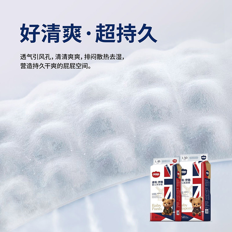 伊酷熊,專注嬰兒防尿用品的研發(fā)、生產(chǎn)及銷售領(lǐng)域,目前有高級嬰兒紙尿褲、嬰兒學(xué)步一體褲等系列。甄選高端優(yōu)質(zhì)原料,采用3D珍珠熱風(fēng)透氣面層,柔軟舒適,干爽透氣,超強鎖水,專注呵護寶寶屁屁健康。