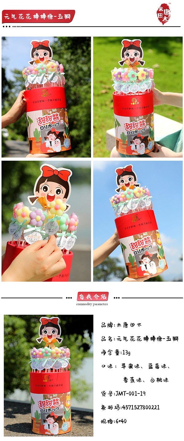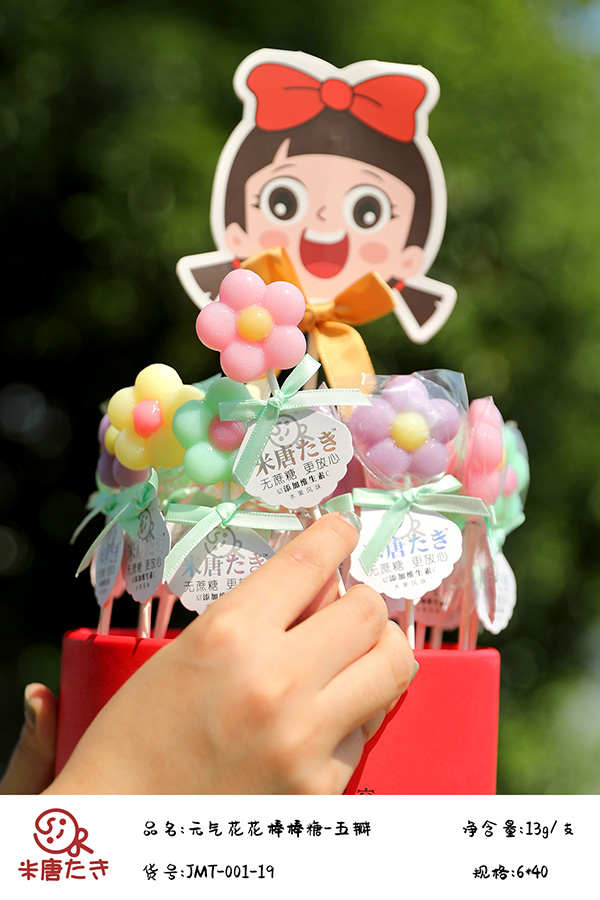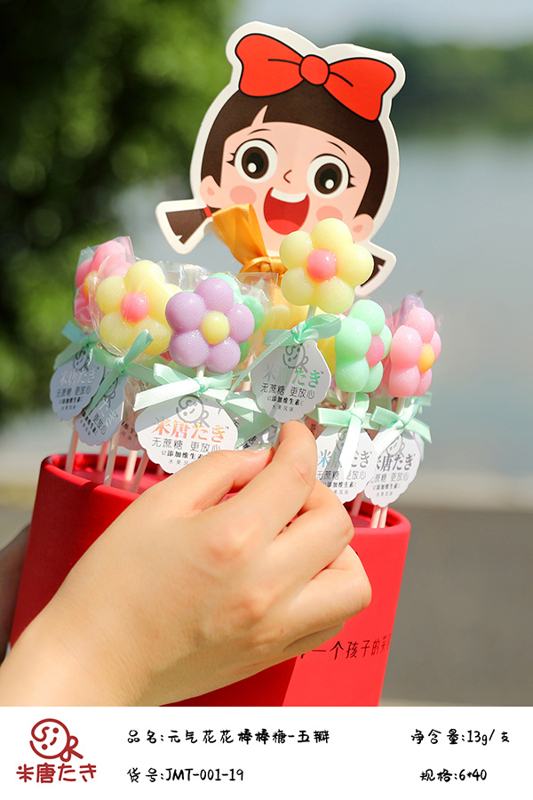 米唐たき棒棒糖系列采用德國進(jìn)口異麥芽酮糖醇為主料,天然口感、無余味 ,溫和的甜度,甜度相當(dāng)于蔗糖的45-60%。天然,無色素,自然色澤,是絕佳的健康食品,可放心食用。來自天然的果肉無異味,只有來自大自然香甜可口的然濃濃果味。