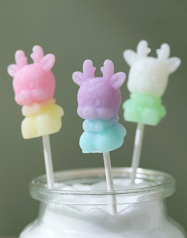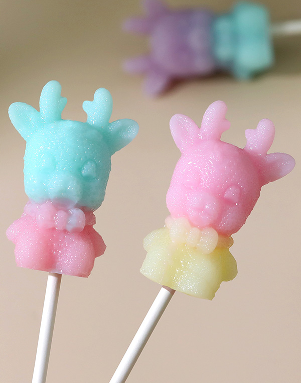 米唐たき動(dòng)物派對(duì)棒棒糖-小鹿馬卡龍紅黃產(chǎn)品展示