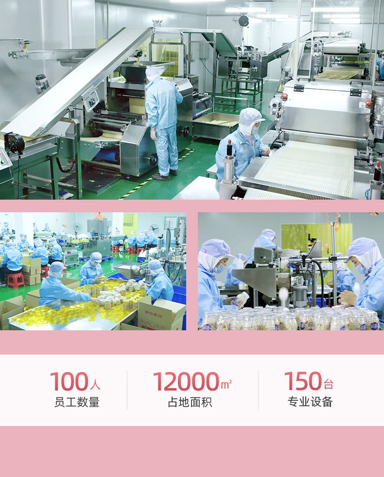 漳州童世界食品有限公司主營一站式代加工OEM業(yè)務(wù),致力于健康兒童食品、功能性代餐食品、凍干燕窩的研發(fā)與生產(chǎn),公司占地面積12000平方米,始終秉承已科技為先導(dǎo)、以先進的現(xiàn)代化管理依托、已“顧客滿意第一”為宗旨的經(jīng)營方針、致力發(fā)展成為一家研發(fā)和制造健康、美味、營養(yǎng)的食品企業(yè)。 公司的誠信、實力和產(chǎn)品質(zhì)量獲得業(yè)界的認可。歡迎各界朋友蒞臨參觀、指導(dǎo)和業(yè)務(wù)洽談。
