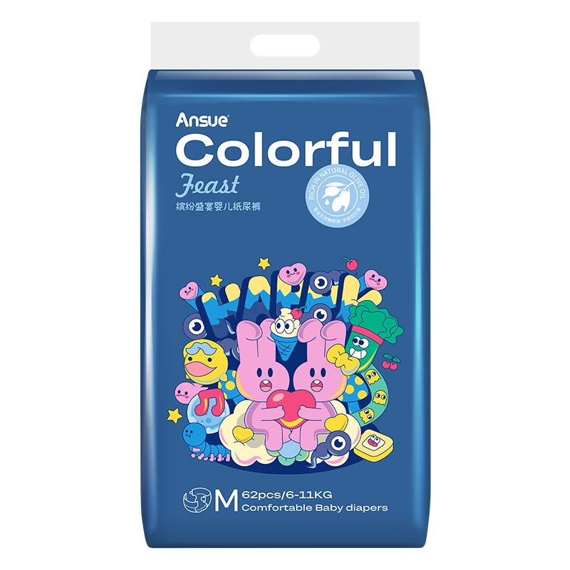 繽紛盛宴嬰兒紙尿褲/拉拉褲,云般柔軟,專為嬰兒肌,多彩設計+6代芯體,守護寶寶每一步。1片瞬吸,8次尿量。瞬吸高分子,一夜一片睡香香;3D表層+智選優(yōu)材,筑牢“屁屁防護盾”;3D雙層柔點觸感,拒絕潮濕,時刻干爽親膚;多重品質檢驗,嚴選優(yōu)材,安全體驗有保障;3段式高彈腰圍,柔軟全包裹,隨動作變換自由拉伸,貼身防護不側漏,給寶寶可感知的舒適;萃取橄欖油精華,呵護嬌嫩肌,有效防紅臀。搭配科學護理提示,換褲清潔、過敏應對全涵蓋。選安秀兒,給寶寶“臀”級寵愛~