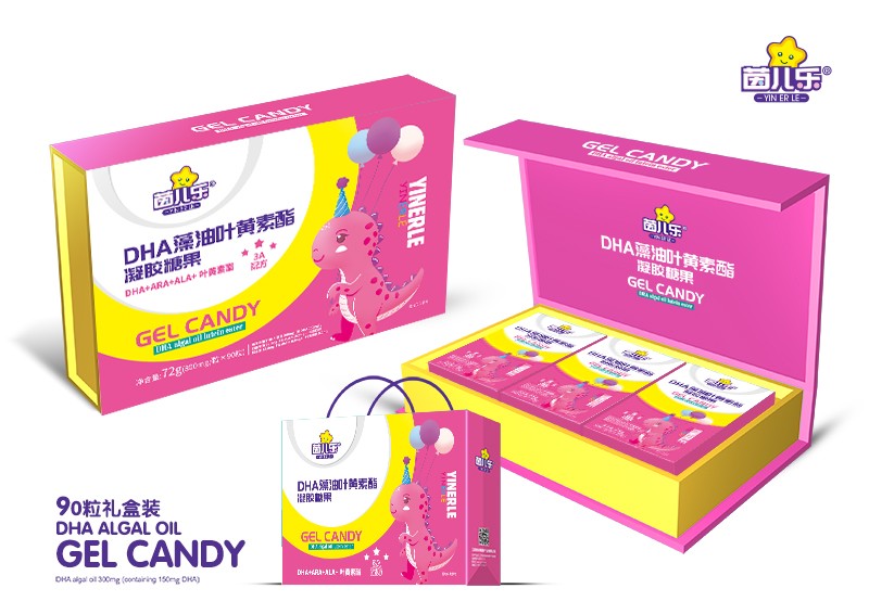 其中,茵兒樂DHA藻油葉黃素酯凝膠糖果,DHA+ARA+ALA+葉黃素酯,3A配方,每克添加了DHA藻油300mg(含DHA 150mg),亞麻籽油22.5mg(含ALA≥10.0mg),花生四烯酸油脂18.8mg(含ARA≥8.0mg),葉黃素酯5.1mg,高含量,營(yíng)養(yǎng)多,90粒禮盒裝,品質(zhì)保證,更實(shí)惠,更大氣!
